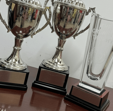 This trophy is awarded for recognised achievements, attendance, and support by a member or couple, selected by the incumbent Management Committee. The recipient(s) hold the perpetual trophy for the annual period and also receive a dedicated smaller presentation trophy to keep.
